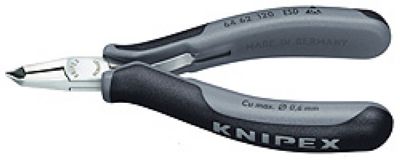 防静电;双色双重材料手柄黑色/灰色;长度120;头部镜面抛光;双色双重材料手柄;型 6:小偏刃顶切钳(a=65o),凹槽头,迷你刀片