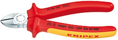 精密的剪切刀口适于剪切软线和硬线;切割硬度约为洛氏硬度62HRC;头部较窄,适用于小空间的操作;型 0:偏刃;长度125,头部镀铬,双色双重材料绝缘手柄