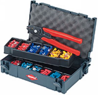 TANOS MINI-systainerTM包装(牢固的塑料盒体);两个可堆叠的塑料插入格,每个各六列,用于装连接端子;压线钳97 32 225,每个端子各25个97 99 - 01/02/04/07/09/14/16/17/20/21/34/35