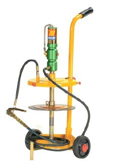 ME1105用于20kg油桶,配有: 气动黄油泵1:60 手推车 桶盖?320mm 铠装软管3m,G2” 带管油枪