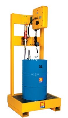 配有: 2个气动油泵(R=3:1bar) 带壁挂功能接油槽 2个10m,R1 1/2” 提油软管卷盘 2个1500mm R1 1/2”油管 2个数显流量计数提油喷嘴